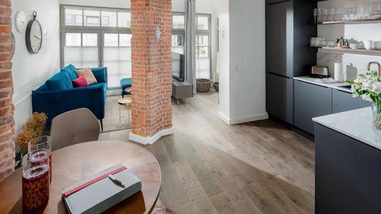 Die Ferienwohnung umfasst 1 Schlafzimmer, einen TV, eine gut ausgestattete Küche mit Kühlschrank und Geschirrspüler sowie ein Badezimmer mit einer Dusche. Der Wohnraum bietet Bequemlichkeit und ist für einen angenehmen Aufenthalt eingerichtet.