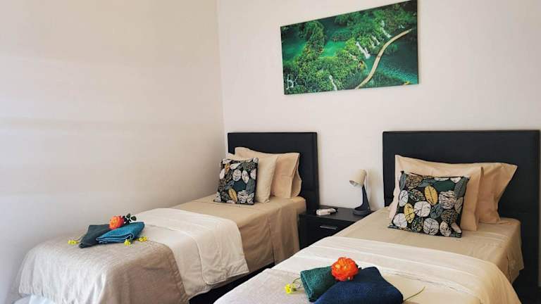 Die Villa umfasst 2 Schlafzimmer, ein Wohnzimmer sowie eine voll ausgestattete Küche mit Kühlschrank und Kaffeemaschine. Es gibt 3 Badezimmer, die jeweils mit einem Bidet und einer Dusche ausgestattet sind. Handtücher und Bettwäsche werden zur Verfügung gestellt, zudem bietet die Villa Klimaanlage.