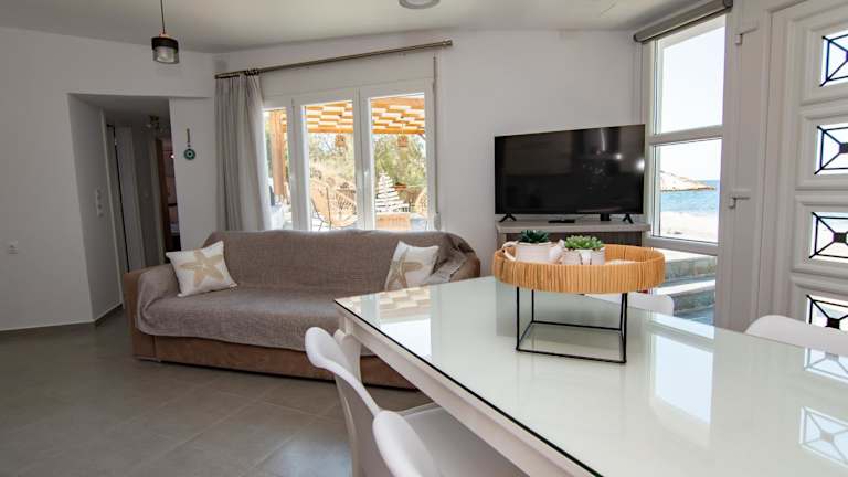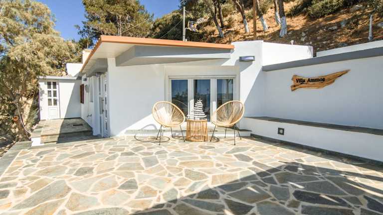 Die Villa Ammos Seaside bietet Übernachtungsmöglichkeiten in einem einladenden Ferienhaus direkt am Strand. Die Unterkunft ist mit kostenlosen WLAN und Klimaanlage ausgestattet und umfasst eine Terrasse, die zum Entspannen einlädt. Ein kostenloser Privatparkplatz steht ebenfalls zur Verfügung.