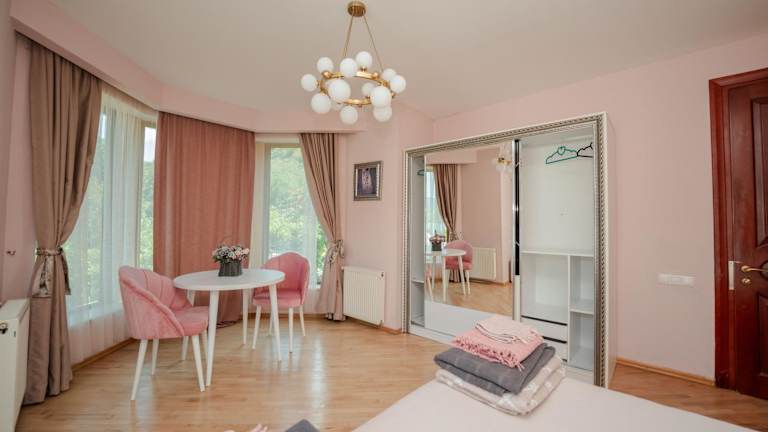 Die Villa Ananuri ist eine charmante Unterkunft mit einem saisonalen Außenpool in Ananuri, nur 60 km von Tiflis entfernt. Hier können Sie sich auf kostenfreies WLAN, Privatparkplätze und eine herrliche Terrasse mit Blick auf den üppigen Garten freuen. Die Villa bietet eine gut ausgestattete Küche, eine Sauna und die Möglichkeit, verschiedene Veranstaltungen wie Hochzeiten und Abschlussfeiern zu organisieren. Die Umgebung lädt zum Angeln ein und der internationale Flughafen Tiflis ist 80 km entfernt.