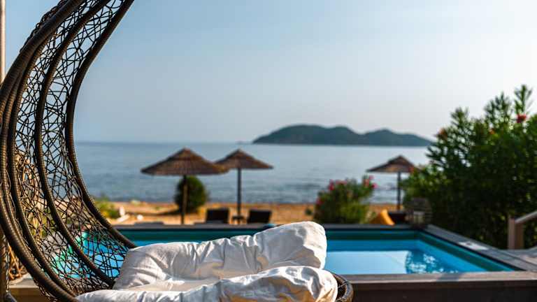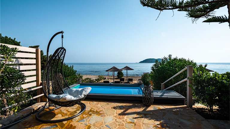 Die Unterkunft Beachfront Andriana Villa mit mini pool und spa liegt in Vasilikos, nur 10 m vom Strand Dafni entfernt. Die Umgebung bietet eine idyllische Strandkulisse und Möglichkeiten zum Kanufahren sowie angenehme Spaziergänge am Wasser.