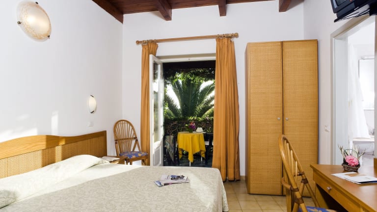 Die Zimmer sind schlicht eingerichtet und verfügen über kühle Fliesenböden sowie Holzmöbel. Zu den Ausstattungsmerkmalen gehören Klimaanlage, Heizung, Minibar, TV mit Satelliten-/Kabelempfang sowie kostenloses Wifi. Die privaten Badezimmer sind mit Dusche und Haartrockner ausgestattet. Zudem bietet das Hotel rollstuhlgerechte Zimmer.