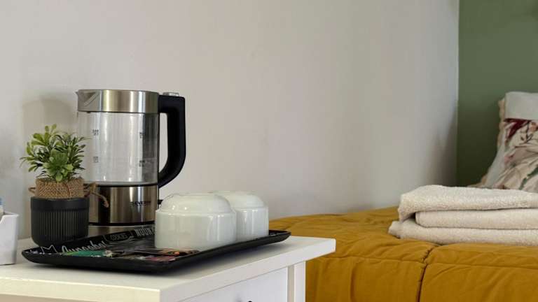 Beim Frühstück werden verschiedene Optionen im Buffetstil angeboten, darunter kontinentale und italienische Speisen. Eine Gemeinschaftsküche steht den Gästen ebenfalls zur Verfügung.