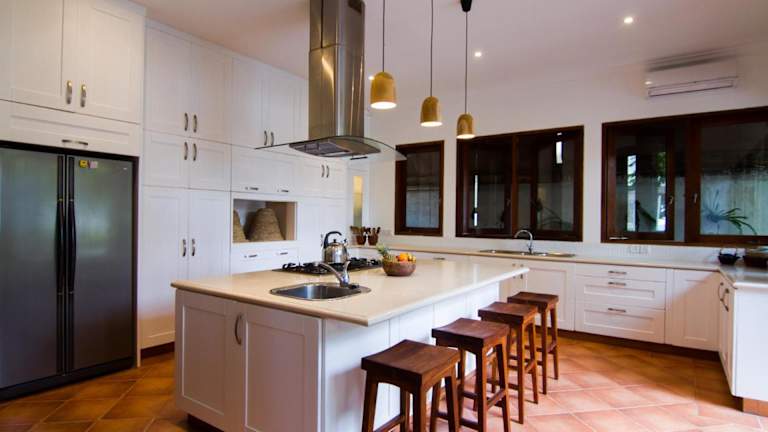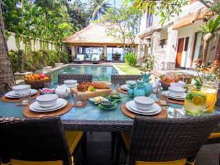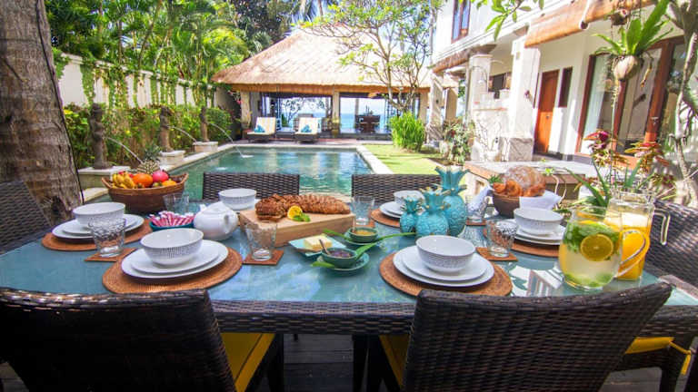 Das Frühstück wird täglich vom Koch der Villa serviert. Es gibt zudem die Möglichkeit, Mahlzeiten in der gut ausgestatteten Küche selbst zuzubereiten oder zubereiten zu lassen. Eine kleine Auswahl an lokalen Cafés, sowie ein Gemeinschaftsbereich mit Küche und TV stehen zur Verfügung.