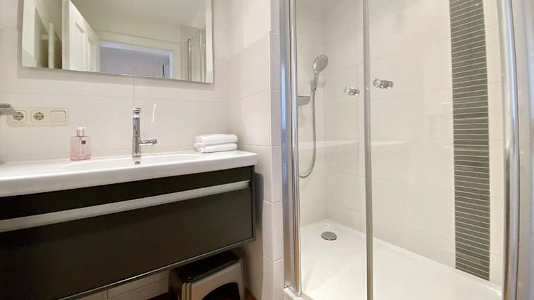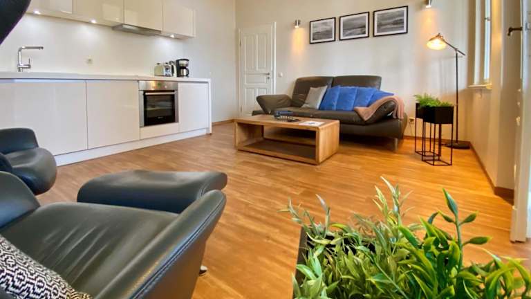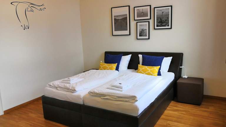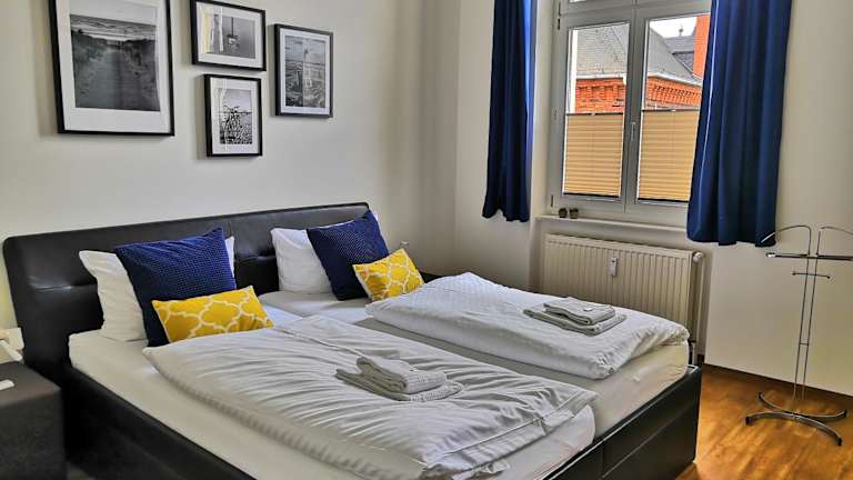 Die Ferienwohnung umfasst zwei Schlafzimmer sowie ein Wohnzimmer mit einem Flachbild-TV. Eine gut ausgestattete Küche mit Kühlschrank und Geschirrspüler ergänzt die Unterkunft. Zudem sind eine Veranda mit Stadtblick und ein Badezimmer mit Dusche vorhanden. Bettwäsche und Handtücher werden zur Verfügung gestellt.