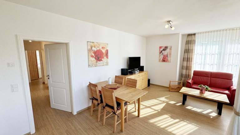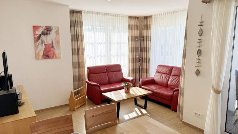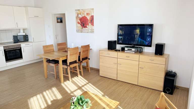 Die Unterkunft Villa Annika - Whg 06 bietet Übernachtungsmöglichkeiten in einer komfortablen Villa, die mit einem Balkon und kostenlosem WLAN ausgestattet ist. Die Villa besteht aus mehreren Räumen inklusive 2 Schlafzimmern, einem Wohnzimmer sowie einer voll ausgestatteten Küchenzeile. Eine Reservierung erfordert die vollständige Vorauszahlung, und es wird eine detaillierte Bestätigung mit Zahlungsinformationen bereitgestellt.