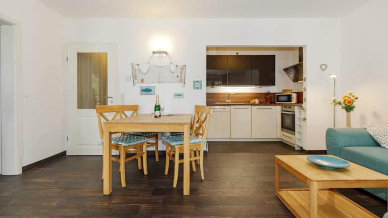 Verbringen Sie Ihren Urlaub in der Villa Antonia Whg_ 8 _Seestern_ in Rerik und genießen Sie die Nähe zum Strand, den Balkon mit Gartenblick und das kostenfreie WLAN. Das moderne Apartment bietet Platz für 2 Personen und ist mit einer gut ausgestatteten Küchenzeile ausgestattet. Entdecken Sie die Umgebung mit dem Fahrrad und besuchen Sie die nahe gelegenen Attraktionen wie den Yachthafen Kühlungsborn und den Zoo Rostock.