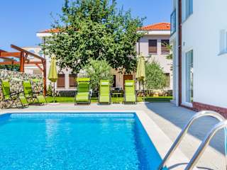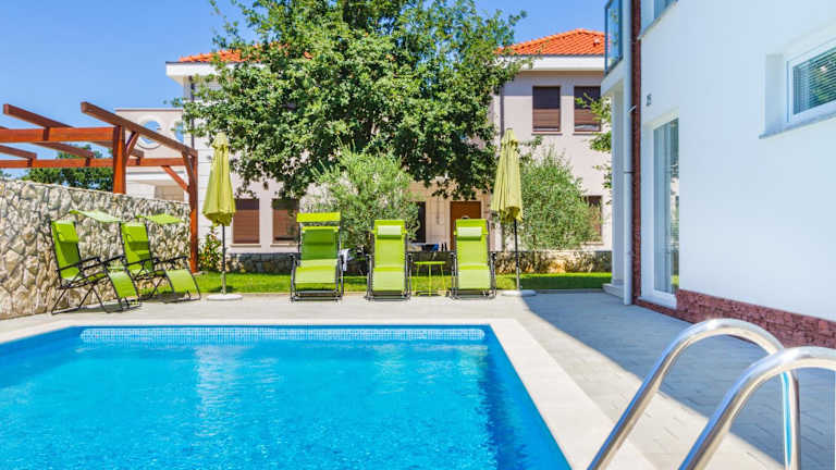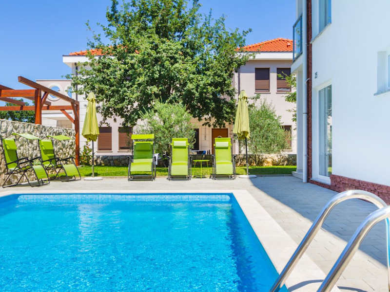 Die Villa Apartments Futura Malinska Krk bietet eine heimelige Atmosphäre mit einem saisonalen Aussenpool und einem Grillbereich. Eine Terrasse lädt zum Entspannen ein.