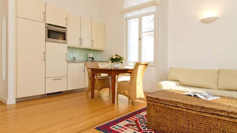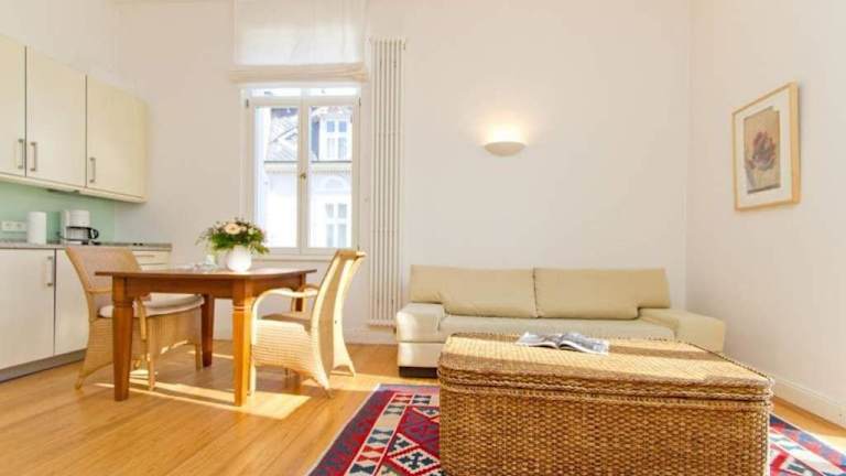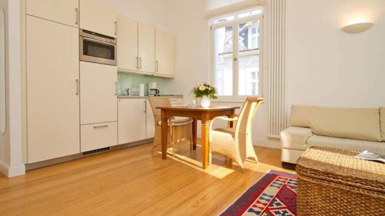 Die Ferienwohnung verfügt über ein Schlafzimmer, einen TV mit Satellitenkanälen sowie eine voll ausgestattete Küche mit Kühlschrank, Geschirrspüler, Waschmaschine, Ofen und Mikrowelle. Handtücher und Bettwäsche werden bereitgestellt.