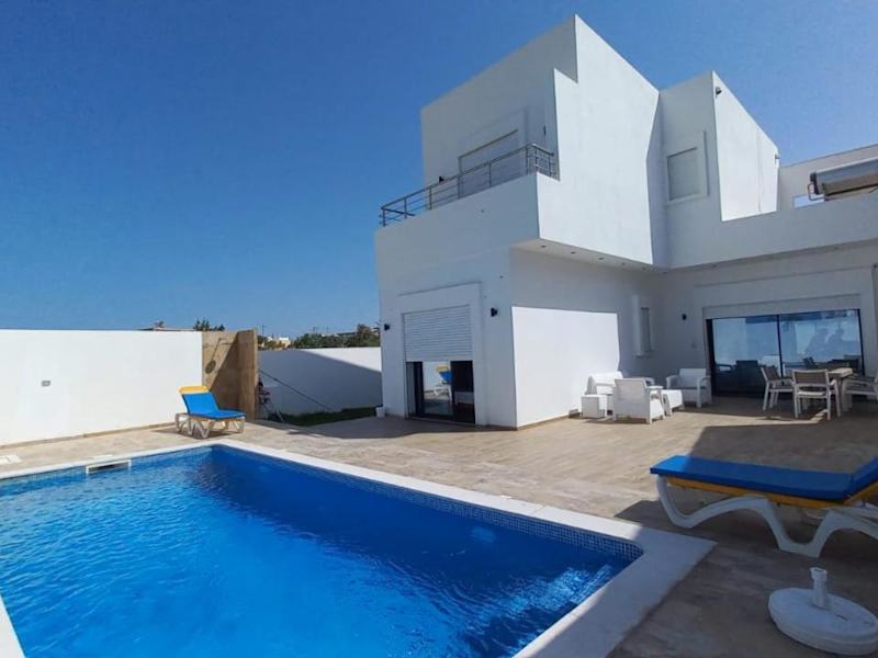 Die Villa befindet sich nur 1,8 km vom Strand Mezraia entfernt und liegt in einer ruhigen Gegend von Djerba. In der Nähe gibt es verschiedene Freizeitmöglichkeiten wie Velofahren und Golfsport, mit dem Golfclub Djerba, der sich 9,4 km entfernt befindet. Der Flughafen Djerba liegt 17 km von der Unterkunft entfernt.