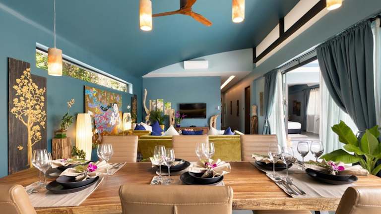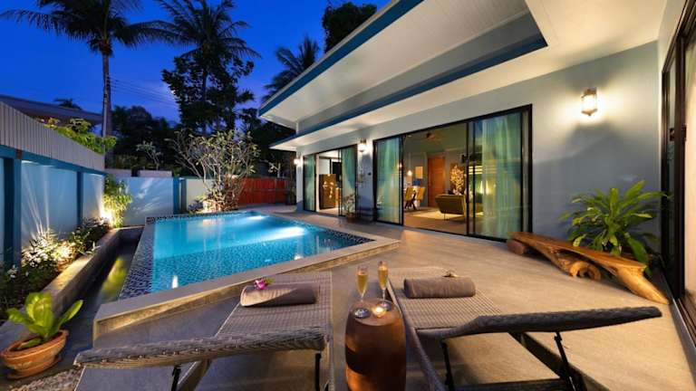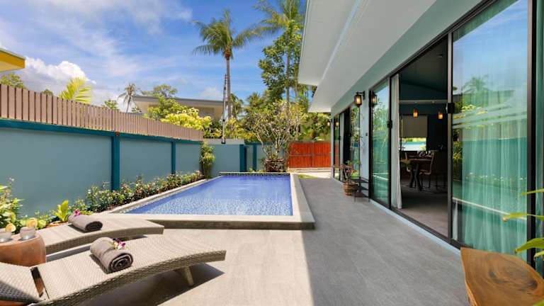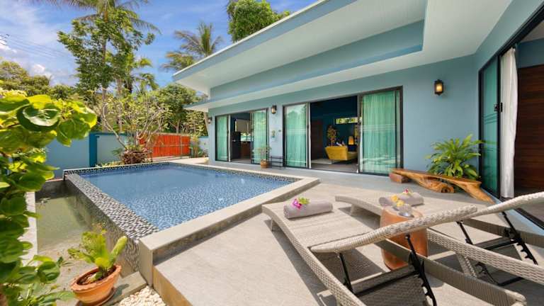 Die Villa Baan Suaan Kluay Mai befindet sich in einer ruhigen Umgebung und bietet einen herrlichen Bergblick. Der Strand Laem Sor liegt ungefähr 800 m entfernt, während der Strand Thong Krut 1 km und der Strand Bang Kao 2,9 km entfernt sind. Der internationale Flughafen Ko Samui ist 24 km entfernt und ein kostenpflichtiger Flughafentransfer wird angeboten.