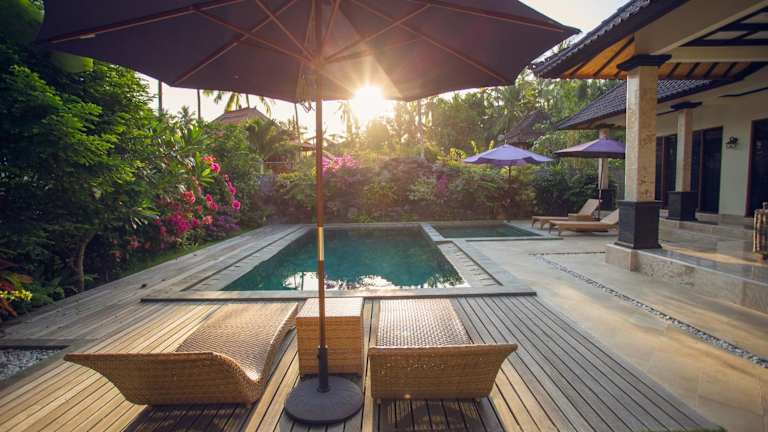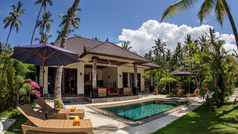 Die Villa Barong präsentiert charmante Villen, die geschmackvoll mit Ziegeldächern und Rattanmöbeln eingerichtet sind. Jede Villa verfügt über einen eigenen Pool und eine Sonnenterrasse. Zudem steht den Gästen kostenfreies Wifi zur Verfügung. Die halb offenen Wohnbereiche bieten einen Blick auf den Pool und die grüne Umgebung.