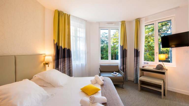 Willkommen in der Villa Bettina in La Baule! Diese Unterkunft befindet sich in einem ruhigen Wohngebiet an der Côte d'Amour und bietet Ihnen einen komfortablen Aufenthalt nur wenige Gehminuten vom Strand Benoît und dem Kongresszentrum Atlantia entfernt. Genießen Sie das hauseigene Restaurant und das kostenfreie WLAN. Die Villa Bettina besteht aus zwei Gebäuden, die nur 50 m voneinander entfernt liegen. Jedes Zimmer ist mit einem Flachbild-TV ausgestattet und Sie können in der Gemeinschaftslounge entspannen. Spielen Sie eine Partie Tischtennis oder erkunden Sie die Umgebung mit einem Fahrrad, das Sie vor Ort ausleihen können. Wassersportmöglichkeiten sind in der Nähe verfügbar. Besuchen Sie auch die nahe gelegenen Städte Le Pouliguen, Pornichet und Guérande. Der Flughafen Nantes-Atlantique ist 82 km entfernt.