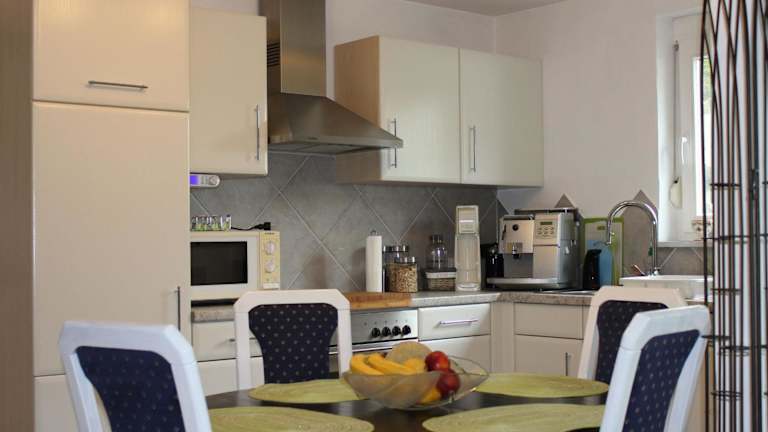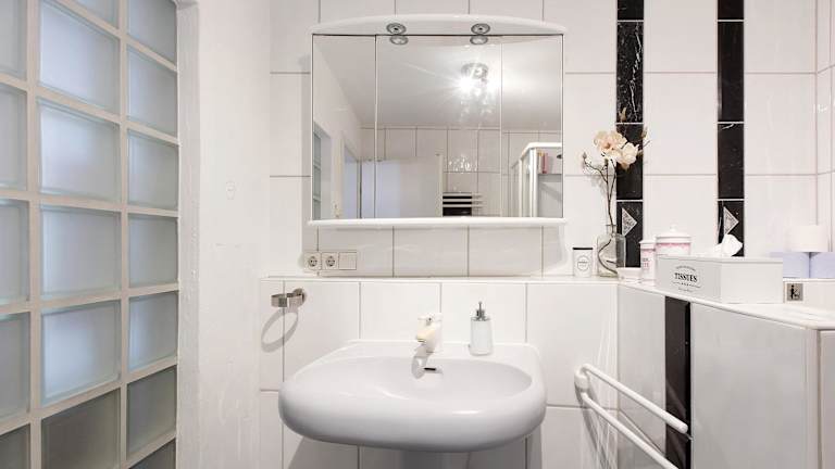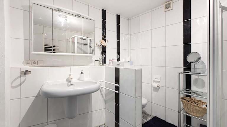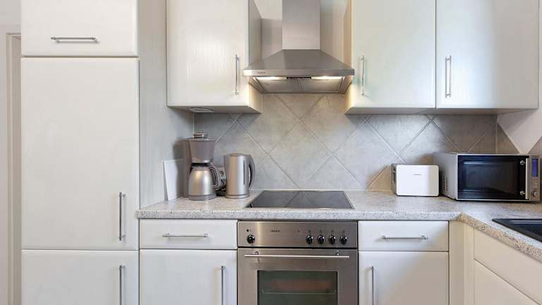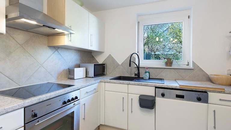 Die Ferienwohnung besteht aus einem Schlafzimmer, einem Wohnzimmer, einer voll ausgestatteten Küche mit Geschirrspüler und Kaffeemaschine sowie einem Badezimmer mit Dusche und kostenlosen Pflegeprodukten. Handtücher und Bettwäsche werden bereitgestellt.