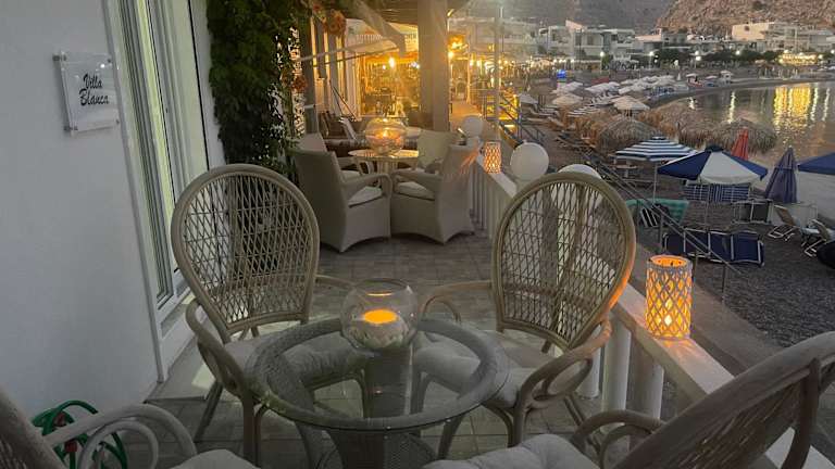 Die Zimmer der VILLA BLANCA bestehen aus zwei Schlafzimmern und einem Badezimmer. Zur Ausstattung gehören Bettwäsche, Handtücher, ein Flachbild-TV mit Satellitenkanälen sowie eine voll ausgestattete Küche. Zudem steht den Gästen ein Essbereich zur Verfügung und der Balkon bietet einen Blick auf das Meer.