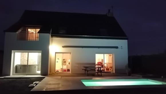 Die Unterkunft Villa bord de mer avec piscine et jacuzzi bietet modernen Komfort in einer heimeligen Atmosphäre. Zu den Annehmlichkeiten zählen ein Aussenpool, ein Whirlpool sowie ein Garten mit Grillmöglichkeiten. Die Anlage umfasst 5 Schlafzimmer, ein Wohnzimmer mit Kabel Flachbild-TV und eine gut ausgestattete Küche.