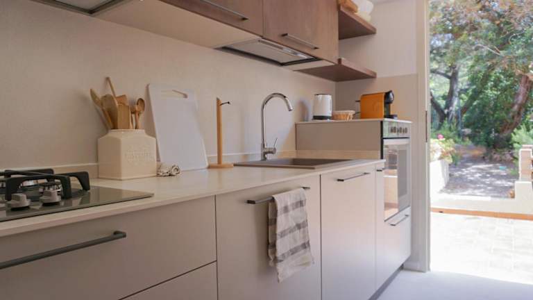 Die Ferienwohnung besteht aus 4 Schlafzimmern, einem Wohnzimmer und einer voll ausgestatteten Küche mit Kühlschrank und Kaffeemaschine. Zwei Badezimmer mit Bidet und Dusche stehen zur Verfügung. Die klimatisierten Räume bieten ein angenehmes Wohngefühl und sind ideal für einen entspannten Aufenthalt.