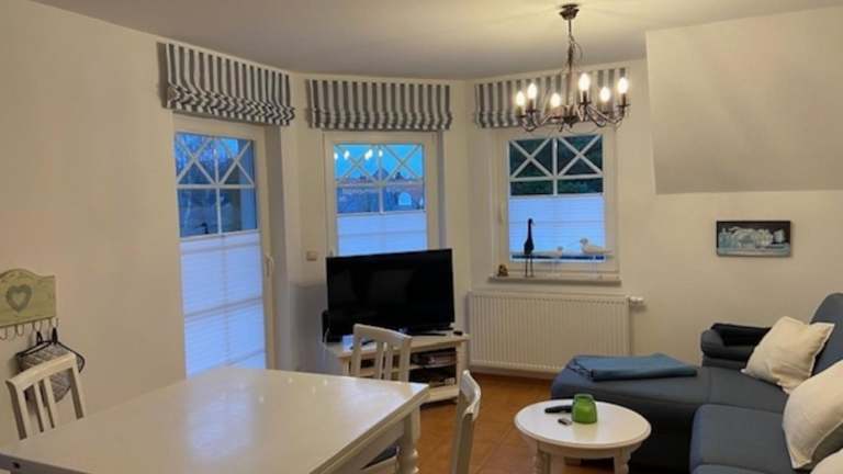 Die Ferienwohnung verfügt über zwei Schlafzimmer und eine funktionale Küchenzeile, die eine angenehme Zeit in Zingst ermöglicht. Die Unterkunft ist modern eingerichtet und bietet die nötige Ausstattung für einen erholsamen Aufenthalt.
