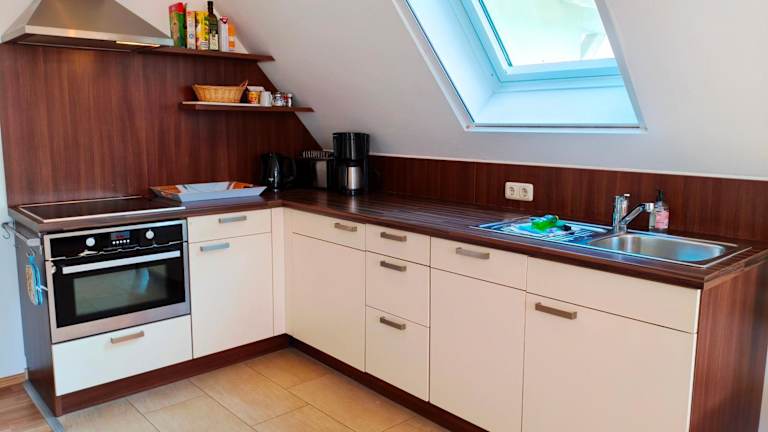 Die Wohnung umfasst 2 Schlafzimmer, eine gut ausgestattete Küche mit Kühlschrank und Geschirrspüler sowie ein Badezimmer mit Dusche und Haartrockner. Zur weiteren Ausstattung gehören ein TV und ein CD-Player.