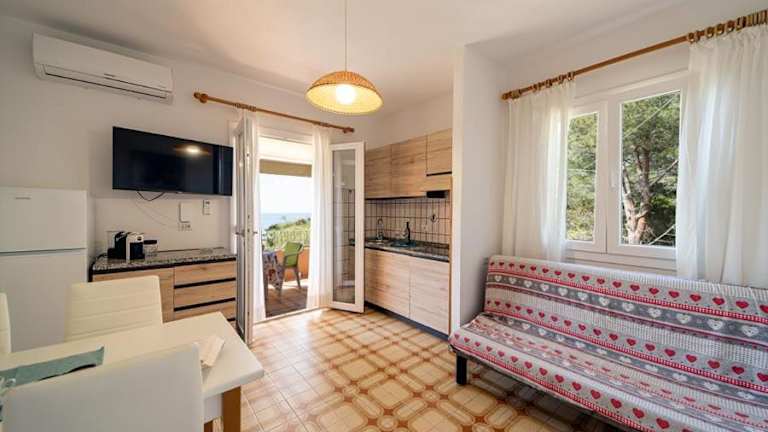 Die Appartements sind klimatisiert und verfügen über eine voll ausgestattete Küche mit Essbereich. Jedes Appartement hat einen Flachbild-TV und ein eigenes Badezimmer mit Bidet, kostenlosen Pflegeprodukten und Haartrockner. Einige Wohneinheiten bieten eine Terrasse und/oder einen Balkon mit Meerblick, was zusätzlichen Wohnkomfort gewährleistet.