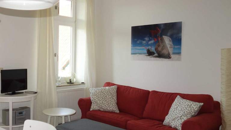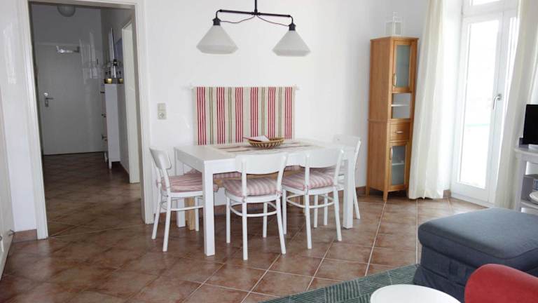 Die Ferienwohnung verfügt über zwei Schlafzimmer und einen Flachbild-TV mit Satellitenkanälen. Eine gut ausgestattete Küchenzeile mit Kühlschrank und Geschirrspüler ist ebenfalls vorhanden. Das Badezimmer ist mit einer Dusche ausgestattet.