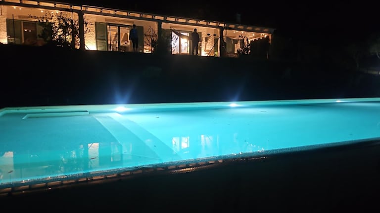 Die Villa umfasst 4 Schlafzimmer, ein Wohnzimmer und eine voll ausgestattete Küche mit Kühlschrank und Kaffeemaschine. Zudem stehen den Gästen 5 Badezimmer mit Bidet und Dusche zur Verfügung. Handtücher und Bettwäsche werden bereitgestellt.
