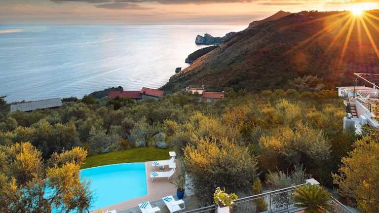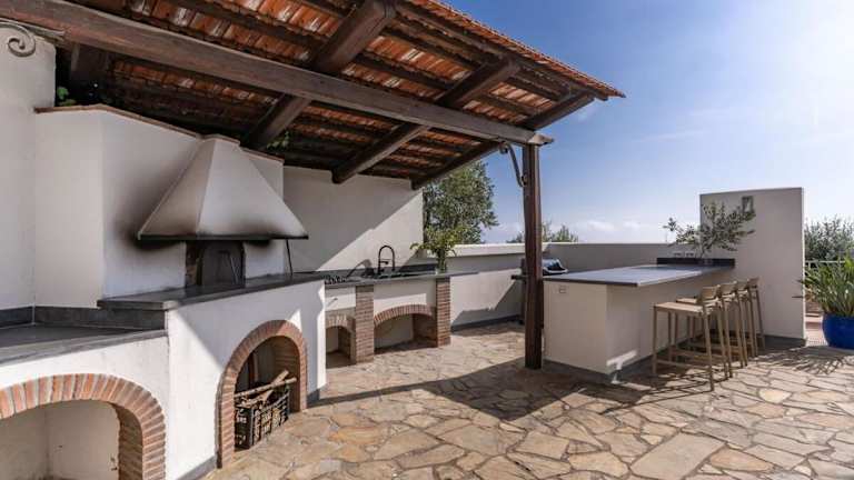 Die Villa Chez Piè liegt in SantʼAgata sui Due Golfi, umgeben von einer malerischen Gartenlandschaft und bietet einen herrlichen Blick auf das Meer. Die nächste Strandlocation, Fiordo di Crapolla, ist nur 1,4 km entfernt, während Marina di Puolo 12 km entfernt ist. Der Flughafen Neapel ist 54 km entfernt.