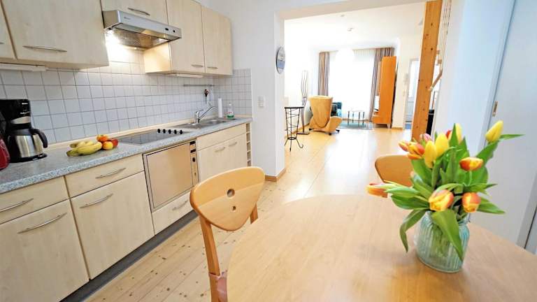 Die Ferienwohnung besteht aus einem Schlafzimmer und ist ausgestattet mit einem Flachbild-TV mit Satellitenkanälen sowie einer gut ausgestatteten Küchenzeile mit Kühlschrank und Geschirrspüler. Zu den weiteren Annehmlichkeiten gehören ein Badezimmer mit Dusche und gratis Wifi.