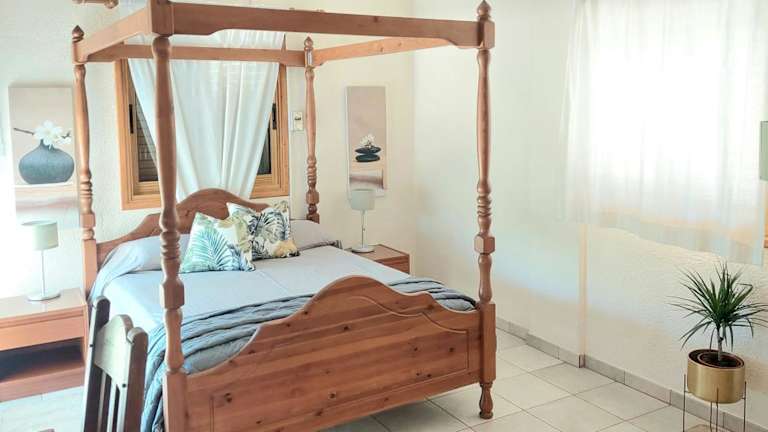 Die Villa bietet Platz in 2 Schlafzimmern mit Klimaanlage, einem Wohnzimmer und einer voll ausgestatteten Küche, die mit einem Kühlschrank und einem Wasserkocher ausgestattet ist. Das Badezimmer verfügt über eine Dusche und kostenlose Pflegeprodukte. Handtücher und Bettwäsche werden bereitgestellt.
