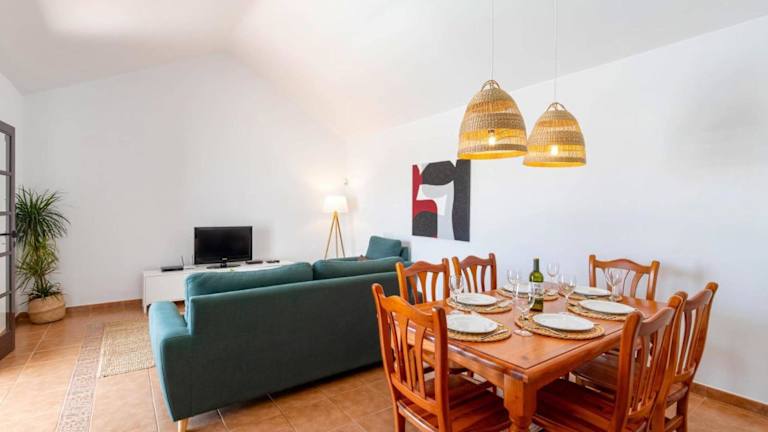 Die Villa ist mit 3 Schlafzimmern ausgestattet und bietet eine vollmöblierte Küche mit Geschirrspüler und Mikrowelle. Es stehen 2 Badezimmer mit Dusche, Haartrockner und Waschmaschine zur Verfügung. Handtücher und Bettwäsche sind vorhanden.
