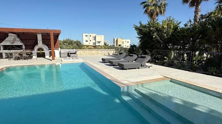Die Villa bietet insgesamt 4 Schlafzimmer sowie ein Wohnzimmer und eine voll ausgestattete Küche mit einem Kühlschrank und einer Kaffeemaschine. Darüber hinaus stehen den Gästen 4 Badezimmer zur Verfügung, welche mit einer Dusche und einem Whirlpool ausgestattet sind. Zur Ausstattung gehören zudem Klimaanlage, Schallisolierung, Handtücher und Bettwäsche. Es sind auch Familienzimmer verfügbar.