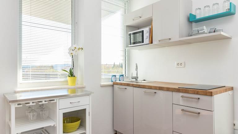Die Wohneinheiten verfügen über eine Terrasse oder einen Balkon mit Blick auf die Stadt oder das Meer. Die Zimmer sind klimatisiert und bieten einen Sitzbereich sowie einen Satelliten Flachbild-TV. Eine voll ausgestattete Küche und ein eigenes Badezimmer mit Dusche und Haartrockner sind ebenfalls vorhanden.