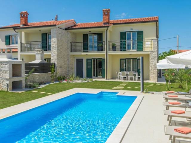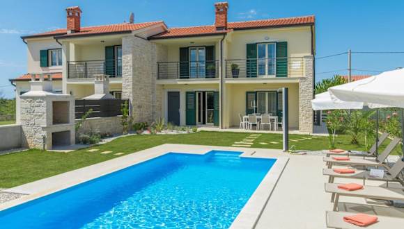 Die Villa Clara mit privatem Pool liegt in Labinci, einer malerischen Region in Istrien. In der Nähe befindet sich der Aquapark Istralandia sowie die Kirche der heiligen Euphemia in Rovinj.