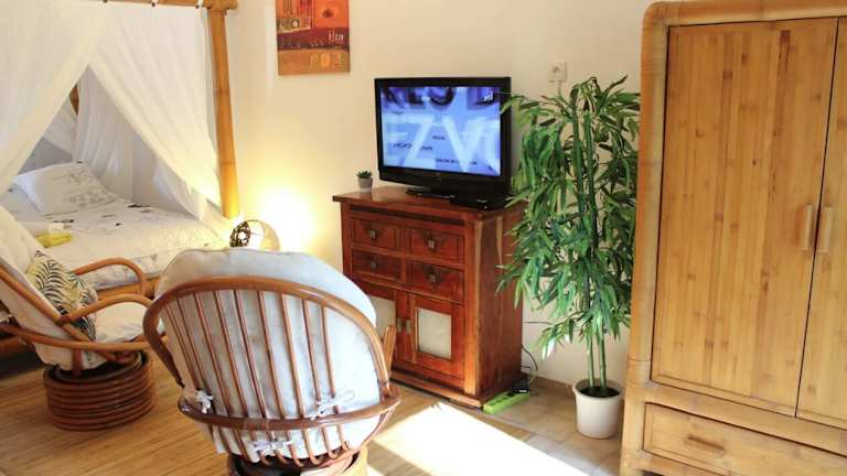 Die klimatisierten Zimmer in der Villa COLIBRI sind gemütlich und komfortabel eingerichtet. Jedes Zimmer verfügt über einen Sitzbereich, einen Flachbild-Sat-TV, eine Küchenzeile und einen Essbereich. Das private Badezimmer ist mit kostenfreien Pflegeprodukten, einer Dusche und einem Haartrockner ausgestattet. Bettwäsche und Handtücher werden gestellt.