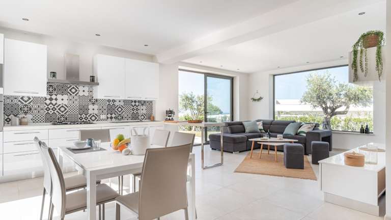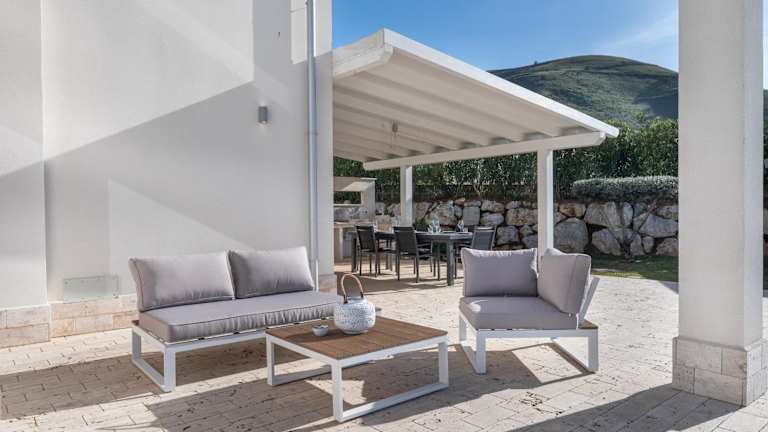 Die Villa besteht aus 5 Schlafzimmern und 3 Badezimmern. Zur Ausstattung gehören Bettwäsche, Handtücher, ein Flachbild-TV sowie ein Essbereich. Die voll ausgestattete Küche ermöglicht eine selbständige Verpflegung. Zusätzlich gibt es eine Terrasse mit Meerblick, die zur Entspannung einlädt. Auf Wunsch können Handtücher und Bettwäsche gegen Aufpreis bereitgestellt werden.