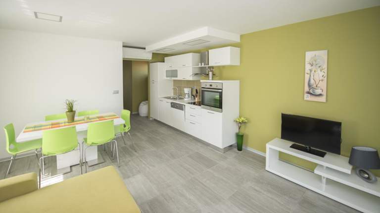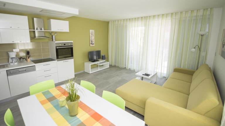 Das klimatisierte Apartment verfügt über einen Flachbild-TV, eine Terrasse und eine voll ausgestattete Küche mit Geschirrspüler und Mikrowelle. Ein grosses Badezimmer mit Dusche und Haartrockner ist vorhanden, ebenso wie eine kleine Toilette. Je nach Apartment haben Gäste die Möglichkeit, den Blick auf den Garten zu geniessen und saisonale Annehmlichkeiten wie einen Whirlpool oder einen kleinen montierten Pool zu nutzen.