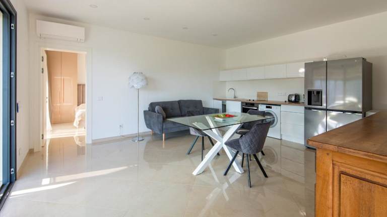 Die Villa bietet ein Schlafzimmer sowie eine voll ausgestattete Küche. Zudem verfügt die Unterkunft über Klimaanlage und einen Flachbild-TV. Die Terrasse mit Gartenblick ist ideal für gemütliche Stunden im Freien.
