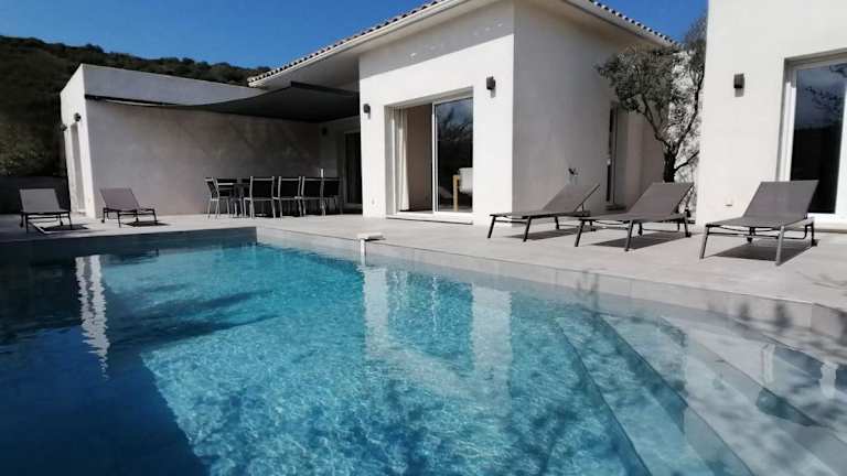 Die Villa ist eine moderne Unterkunft mit einem Aussenpool und einer Terrasse. Sie bietet Übernachtungsmöglichkeiten in einer ruhigen Lage und verfügt über einen eigenen Pool, einen Garten und kostenlosen Privatparkplatz. Für den Aufenthalt stehen Familienzimmer zur Verfügung.