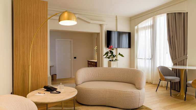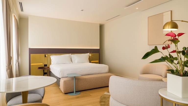 In den Zimmern sorgen eine Klimaanlage und eine individuell steuerbare Heizung für ein angenehmes Raumklima. Die Ausstattung umfasst ein Doppelbett, einen Balkon, einen Safe und eine Minibar. Eine Tee-/Kaffeemaschine, ein Direktwahltelefon, ein TV-Gerät mit Satelliten-/Kabelempfang und WLAN zählen ebenfalls zur Standardeinrichtung. Die Badezimmer sind mit Dusche, Badewanne und Whirlwanne ausgestattet. Haartrockner sind ebenfalls vorhanden. Es stehen Nichtraucherzimmer und rollstuhlgerechte Zimmer zur Verfügung.