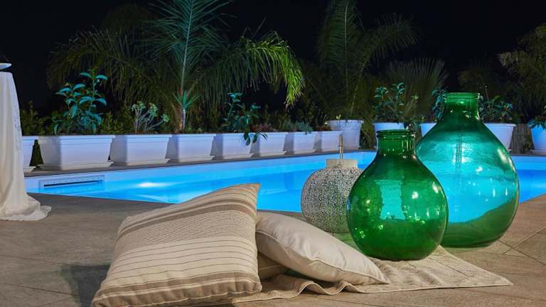 Die Villa verfügt über drei Schlafzimmer, ein Wohnzimmer sowie eine voll ausgestattete Küche mit Kühlschrank und Kaffeemaschine. Zwei Badezimmer sind mit Dusche und Haartrockner ausgestattet. Handtücher und Bettwäsche werden bereitgestellt. Die Zimmer sind klimatisiert und es sind Familienzimmer verfügbar.