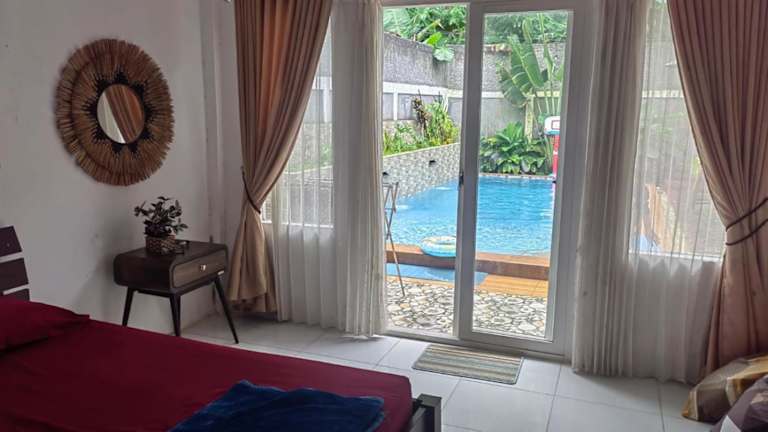Die Villa Dhanty befindet sich in Bogor, mit einer ruhigen Lage in Sukamaju Kec Mega Mendung. Die Umgebung bietet eine grüne Gartenansicht und ist nur eine kurze Fahrt von Attraktionen wie dem Jungleland Adventure Theme Park entfernt.