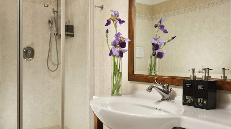 Die 25 Zimmer des Hotels sind klimatisiert und verfügen über einen Balkon oder eine Terrasse, von wo aus die Gäste den Blick auf den Garten geniessen können. Zu den zusätzlichen Ausstattungen gehören ein Safe, eine Minibar, ein Schreibtisch sowie ein Fernseher und WiFi (ohne Gebühr). Die Badezimmer sind mit einer Dusche sowie einer Badewanne ausgestattet und beinhalten Bademäntel und Haartrockner. Es sind Familien- und Nichtraucherzimmer verfügbar.