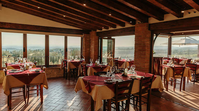 Das toskanische Restaurant Villa di Sotto bietet einen herrlichen Blick auf den Chianti und Siena! Wenn Sie Zeit in unserer Struktur verbringen, können Sie viele Gerichte der typischen toskanischen Küche genießen, ohne die täglichen Sorgen aus den Augen zu verlieren.