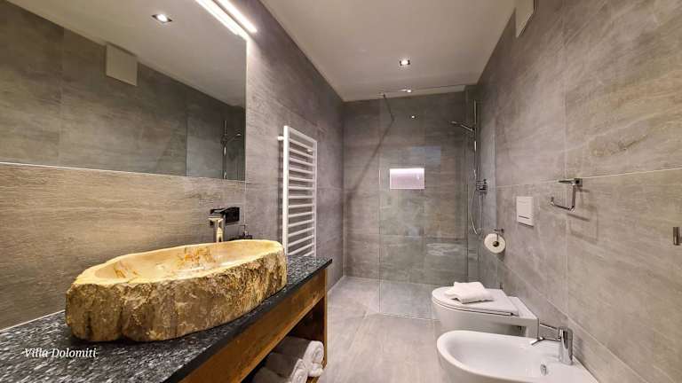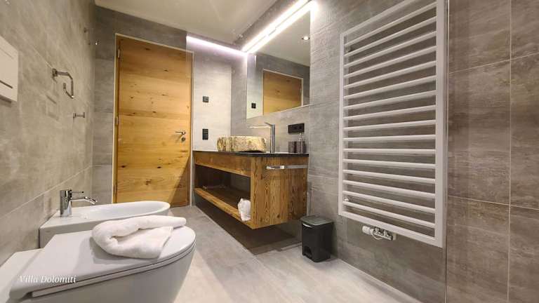 Die Zimmer in der Villa Dolomiti sind mit einem Balkon und einem Sitzbereich ausgestattet. Die Gäste finden einen Satelliten Flachbild-TV vor und die voll ausgestattete Küche bietet unter anderem einen Kühlschrank, einen Geschirrspüler, einen Ofen, eine Mikrowelle sowie eine Herdplatte. Ein Bidet und ein Haartrockner sind im eigenen Badezimmer vorhanden.