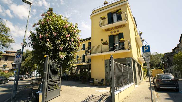 Das Hotel Villa Edera liegt in einer angenehmen und ruhigen Lage am Lido von Venedig. Es befindet sich in der Nähe der Haupteinkaufsstraße und ist nur 250 m von der Hauptanlegestelle der Vaporettos entfernt. Diese Wasserbusse bringen Sie bequem nach Venedig und zum Markusplatz. Der Strand ist ebenfalls nur etwa 250 m entfernt. Der Bahnhof Santa Lucia ist ca. 2 km entfernt und der Flughafen Venedig liegt in einer Entfernung von etwa 12 km.