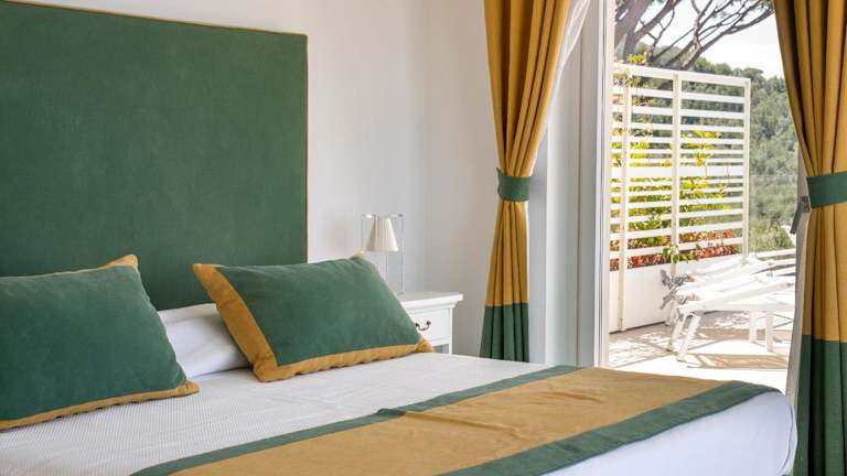 Die modernen, farbenfrohen Zimmer sind mit einer Klimaanlage, einem Flachbild-Sat-TV und einer Minibar ausgestattet. Jedes Zimmer verfügt über eine eigene Terrasse mit Gartenblick. Im luxuriösen eigenen Bad stehen kostenfreie Pflegeprodukte zur Verfügung. Einige Zimmer bieten zusätzlich eine Whirlpool-Badewanne.