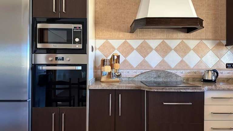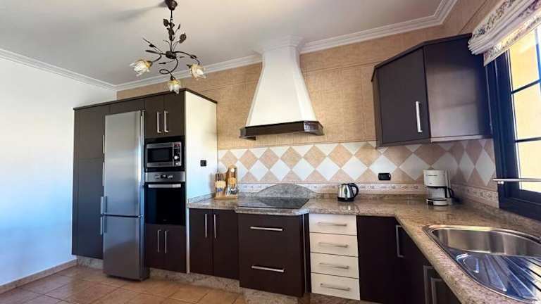 Die Villa bietet insgesamt 3 Schlafzimmer und 2 Badezimmer, die mit einem Haartrockner ausgestattet sind. Des Weiteren gibt es ein Wohnzimmer und eine Küche mit einem Kühlschrank, die für die Selbstversorgung genutzt werden kann. Für den Aufenthalt werden Handtücher und Bettwäsche bereitgestellt. Zudem stehen Annehmlichkeiten wie Klimaanlage und Zugang zur Sonnenterrasse zur Verfügung.