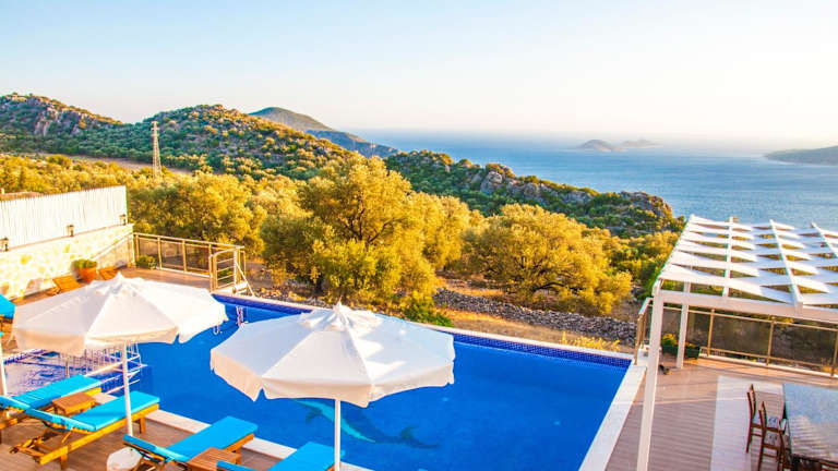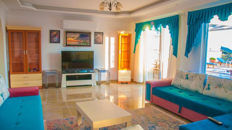 Die Unterkunft Villa Erdo Kalkan 5 Bedroom Villa bietet klimatisierte Übernachtungsmöglichkeiten mit einem Balkon. Sie verfügt über 7 Schlafzimmer, ein Badezimmer, Bettwäsche, Handtücher sowie eine voll ausgestattete Küche und einen Essbereich. Zudem ist ein eigener Pool, ein Garten und eine Terrasse mit Meerblick vorhanden. Die Villa ist eine Nichtraucherunterkunft und keine Feiern sind erlaubt.