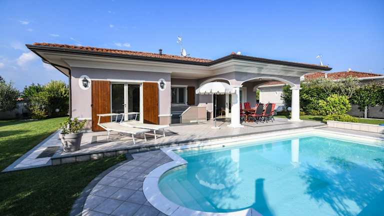 Die Villa besteht aus 4 Schlafzimmern und einem Wohnzimmer, das zum Verweilen einlädt. Die voll ausgestattete Küche beinhaltet einen Kühlschrank und eine Kaffeemaschine. Zudem gibt es 3 Badezimmer, welche mit einem Bidet und einer Dusche ausgestattet sind. Handtücher und Bettwäsche werden zur Verfügung gestellt.