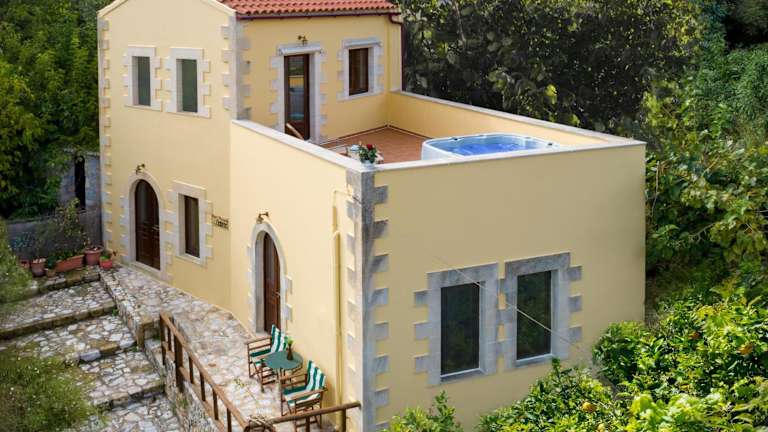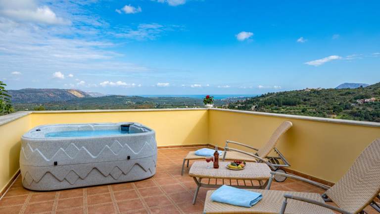 Die Villa Erontas - private heated jacuzzi bietet eine einladende Atmosphäre mit verschiedenen Annehmlichkeiten wie einer Terrasse und einem Balkon. Die Unterkunft ermöglicht den Zugang zu einem beheizten Jacuzzi sowie einem Aussenpool. Es handelt sich um eine Nichtraucherunterkunft, die sich ideal für Familien eignet.